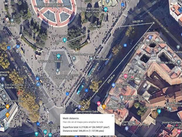 Confirmada por mi compañero la presencia de P. longicornis en plaza Cataluña, la semana pasada me acerqué un momento a la zona. En la imagen número 5, se puede ver el área de media hectárea aproximadamente que ocupa. Si tuviera que establecer un tiempo de ocupación, podría llevar en la zona tres años o más. Tan solo es suficiente la llegada de una reina con unas pocas obreras para crear una nueva población. Al principio va lenta la ocupación, pero luego se va acelerando con el crecimiento de hormigueros con muchas reinas en cada uno de ellos.