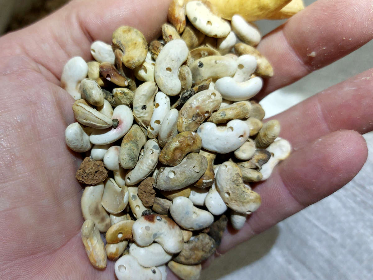 Se calcula que las pérdidas por A. obtectus en el campo son de hasta el 20%, mientas que en el almacén pueden ser de hasta el 100% [5]. La pérdida de peso afecta a su capacidad germinativa, nutricional y, obviamente, comercial. El interior de la semilla queda llena de excrementos y a merced de los hongos que degradan aún más la semilla. Sabemos que un material poroso se convierte en una esponja para la humedad. Y detrás de las plagas primarias de los granos llegan las secundarias. En la muestra también había adultos de Oryzaephilus surinamensis, la carcoma dentada de los granos.