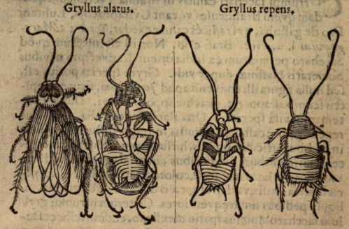Es interesante saber desde cuándo se tiene conocimiento de la especie. Para ello tenemos obras básicas como la de K. Princis de 1966 donde recoge todas las obras que hablan de P. americana [9]. Gracias a este especialista he localizado el texto más antiguo. Se encuentra en la obra del médico danés T. Bartholin (1616-1680) titulada ‘Acta medica et philosophica hafniensia’ [10]. En el primer volumen publicado en 1673 se encuentra el capítulo 54 dedicado a la cucaracha americana bajo el título de ‘Vermes in saccharo’ que traduzco como gusanos en azúcar. Observó que llegaba la cucaracha en barcos procedentes de Brasil. Consultó las obras científicas de la época y se dio cuenta de que no aparecía en ninguna. Así que relató lo que vio y le explicaron. Ilustró su texto con un grabado en el que muestra un adulto y una ninfa (figura 6). Al primero lo llamó Gryllus alatus (grillo alado) y la ninfa Gryllus repens (grillo rastrero). Su conocimiento no era tal como para establecer una relación entre ninfa y adulto, por lo que deduzco.