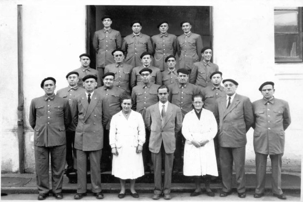 Fig 1. Trabajadores del Servicio Municipal de Desinfecciones de Bilbao hacia 1955. En el centro el cabo practicante Eugenio Bravo Hernando./ SAMUR Bilbao [9].