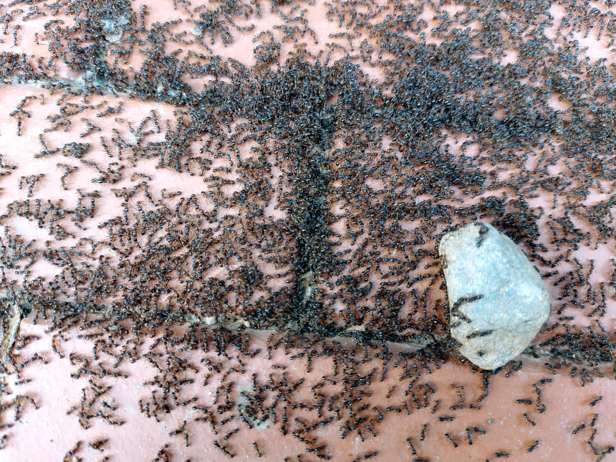 Dicho lo anterior, explicaré lo que observé sobre este enfrentamiento de T. immigrans. De hecho, hace años que vengo observando estas contiendas que se pueden calificar ciertamente como de civilizadas. No comprendía qué hacía el barullo ese de obreras hasta que me lo explicaron. Desde entonces, cuando veo uno, me paro a observar. Es una maravilla que sucede durante la primavera. En la contienda dos colonias miden sus fuerzas. Se desconoce la razón verdadera del enfrenteamiento, aunque se supone que es territorial [4]. Cuando eso sucede, las obreras van reclutando unas a otras y todas van hacia el campo de batalla. El enfrentamiento es principalmente una a una y se agarran por las mandíbulas. Los enfrentamientos pueden durar hasta 10 horas y luego en 30 minutos se separan. Y así en varios encuentros de las dos colonias durante 3 a 5 días [4]. No se sabe exactamente quién gana y qué gana. Eso sí, todo civilizado y con las mínimas bajas.