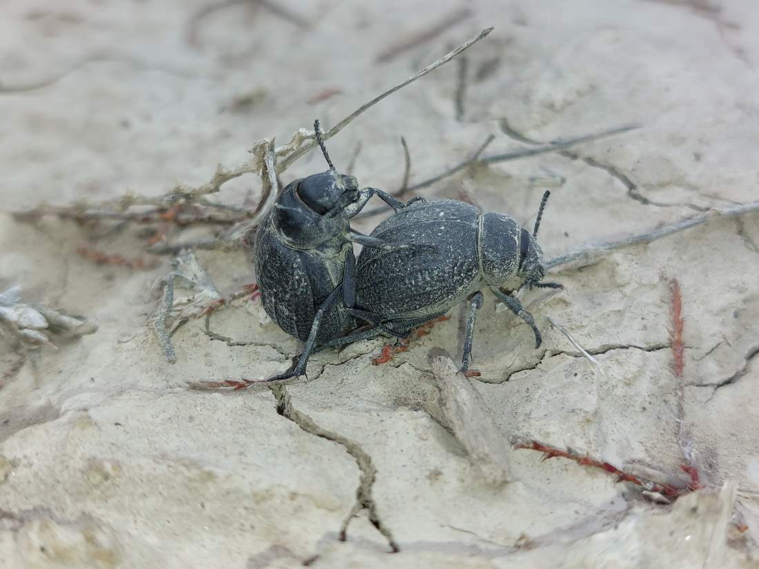 Por lo que he podido leer, ambas especies tienen un ciclo bianual. Son detritívoras. Buscan suelos arenosos como el que encontré en Galera. Son comunes cerca de las costa en dunas y playas. La hembra pone los huevos en la arena donde se desarrollan las larvas enterradas alimentándose de hogos y detritus vegetales. Los adultos aparecen al principio de la primavera y pueden estar activos hasta principios de verano [3].