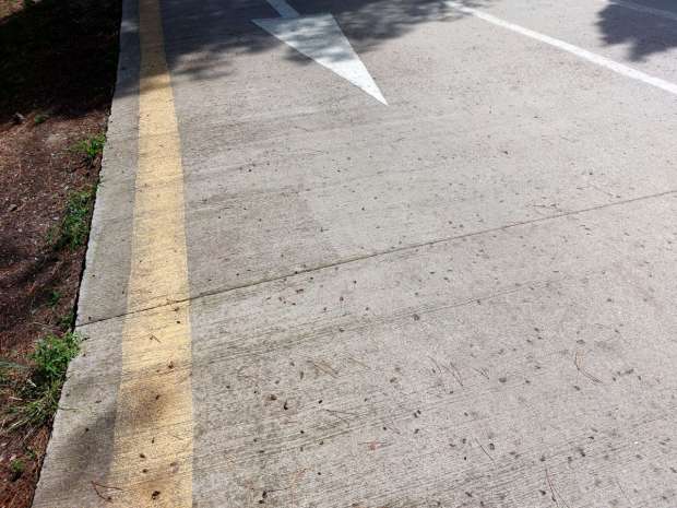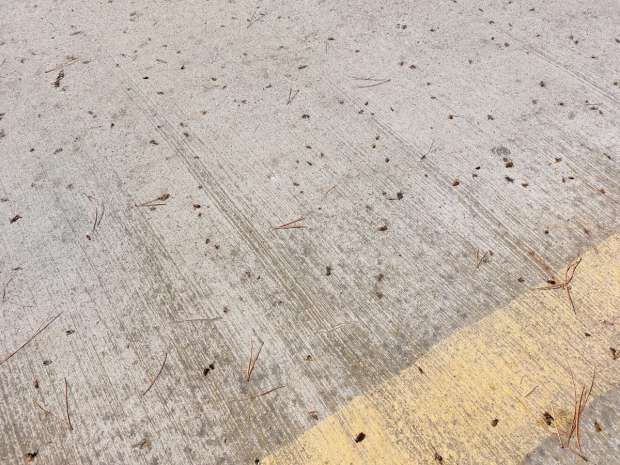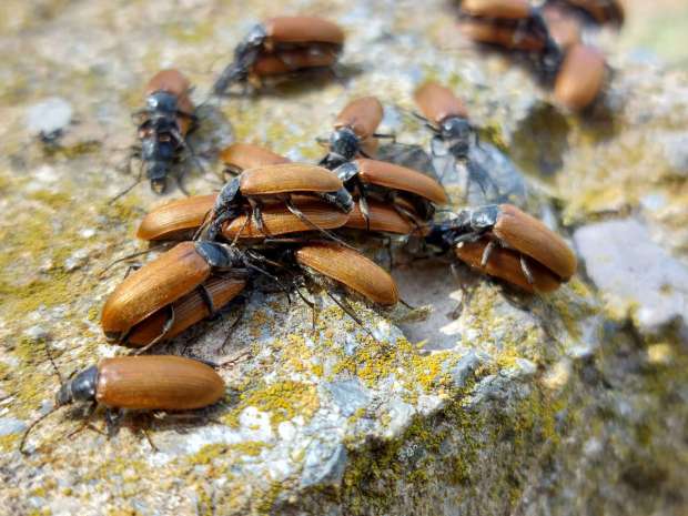 Fig 2. Coleópteros muertos en la carrertera de la entrada del yacimiento arqueológico de Ampúries, Girona./ C. Pradera 05-2024