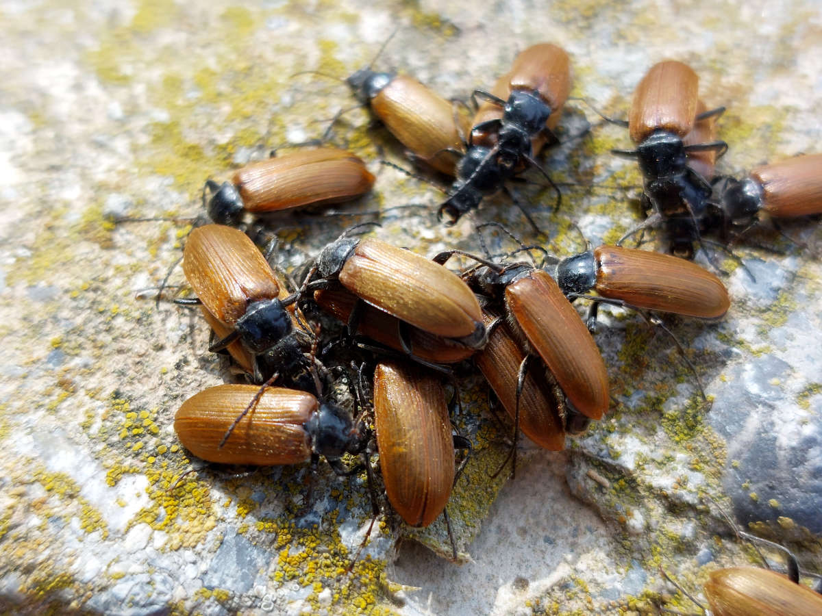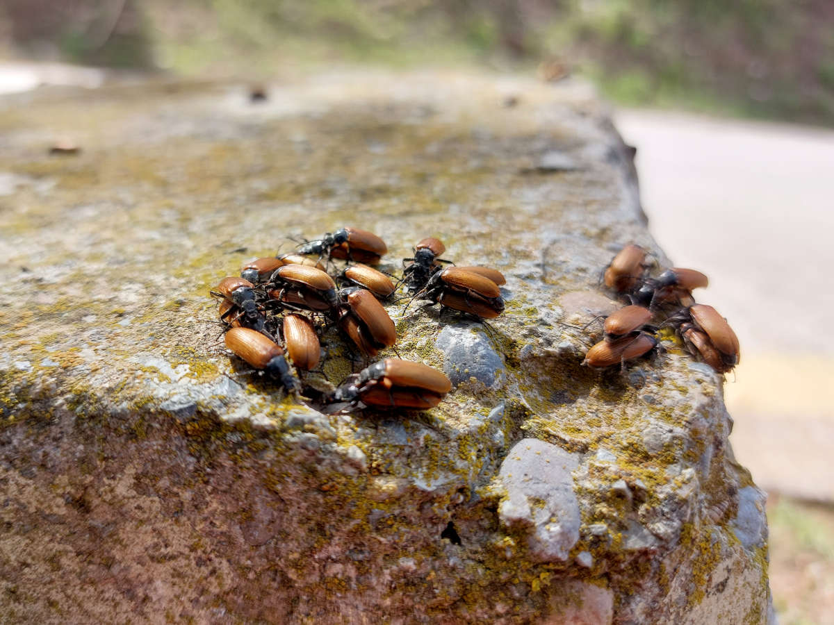 Fig 2. Coleópteros muertos en la carrertera de la entrada del yacimiento arqueológico de Ampúries, Girona./ C. Pradera 05-2024