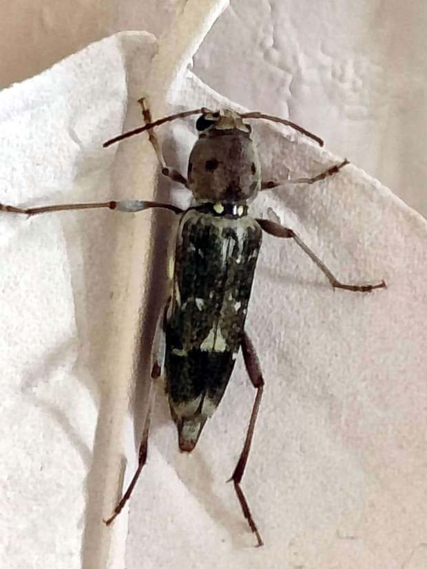Escribo esta entrada gracias a Juan Antonio del Corral, compañero mío en Anticimex España. Se encontró un caso muy interesante de longicornios que aparecieron en un interior en Marbella (Málaga) y compartió conmigo las fotografías (figuras 1-3 y 8). Pero no solo eso, sino que capturó unos ejemplares y me los hizo llegar. Con las excelentes fotografías que hizo, pude ver que se trataba de alguna especie de Xylotrechus, un género de la familia Cerambycidae complejo. No tanto por su identificación, que también, sino porque tenemos especies autóctonas en la península Ibérica y otras exóticas que van llegando.