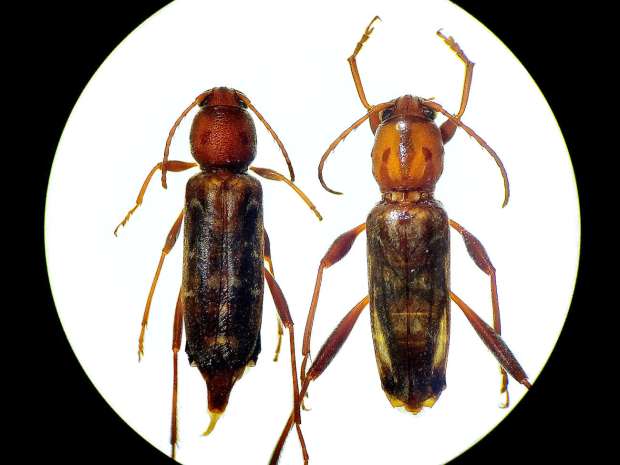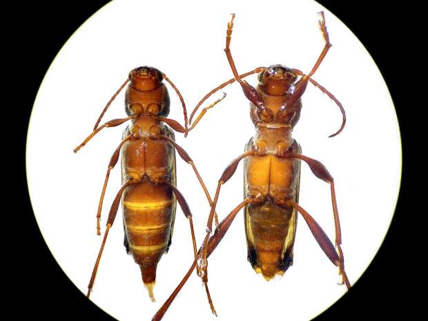 Fig 6. Vista dorsal de hembra (izquierda) y macho (derecha) de Xylotrechus stebbingi./ C. Pradera 06-2024