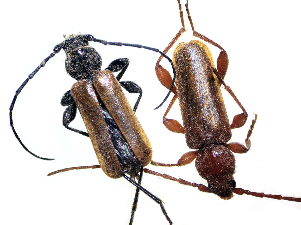 Son unos coleópteros preciosos. Uno no siempre tiene acceso a este material para poder apreciar su belleza. Empezaré por los cerambícidos. En este punto mencionar que ambos han completado su ciclo en la madera de encina. Sobre Xylotrechus stebbingi no puedo añadir nada a lo que escribí recientemente en una entrada (figura 2) [1]. Hay registros de esta especie tanto en Quercus como en Olea. Es una especie exótica y no está citado oficialmente para la provincia de Barcelona. Respecto a Phymatodes testaceus, tampoco dedicaré muchas palabras porque en junio de 2012 le dediqué una entrada en este blog (figura 3) [2]. Es habitual que aparezca en leña. No hay año que no me llegue alguna imagen en interiores de una situación similar.