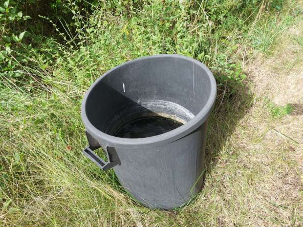 Si nos vamos al manual sobre mosquitos y su control de Becker et al. [3], se explica que las larvas se desarrollan en huecos en los árboles a distintas alturas, así como en tocones de árboles caducifolios. Sin embargo, también puede ser encontrado en charcas subterráneas junto a Anopheles plumbeus, otra especie común en bosques caducifolios, pero que no he encontrado de momento en el Pallars Sobirà. Como otras especies del género Aedes, pasa el invierno en forma de huevo. Los adultos aparecen en verano ligado al régimen de lluvias. Se alimentan de mamíferos y los humanos somos su objetivo. Es interesante el hecho de que esta especie pueda criar en otras acumulaciones más allá de agujeros en árboles. Esto ha permitido que un cubo de agua como el de la imagen 6 se haya convertido en un lugar donde completar su ciclo.