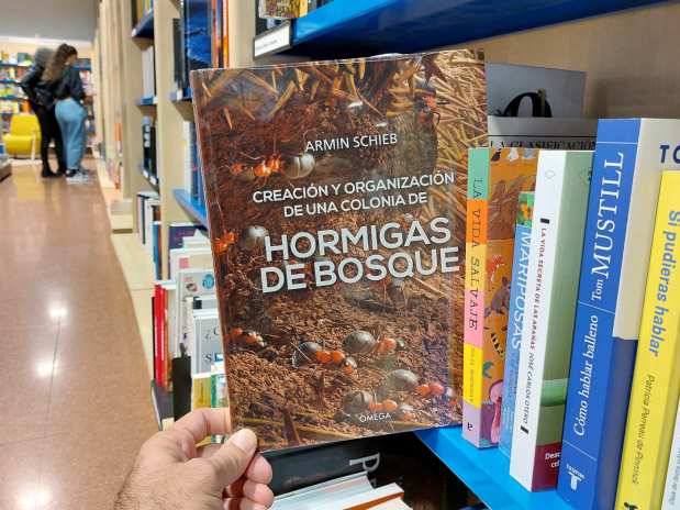 Fig 1. ‘Hormigas de bosque’ de Armin Schieb en una librería de Badalona./ C. Pradera 04-2024