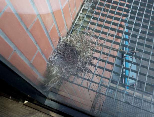 Así pues, ya tenía el diagnóstico, solo quedaba buscar el origen que se encontraría en el exterior. Así que me dirigí hacia las ventanas para buscar un nido de paloma doméstica (Columba livia), que es lo común en una ciudad. Pues bien, lo que vi fue un nido de tórtola turca (Streptopelia decaocto) (figuras 4 y 5). Y junto al nido, el pichón. Todo encajaba. El ácaro Dermanyssus gallinae se desarrolla en el nido de las aves. Así, cuando quiere ingerir sangre, simplemente se mueve un poco y accede a su hospedador. Durante el tiempo que los adultos incuban los huevos y mientras crecen los pollos, la población de D. gallinae crece y crece. Sin embargo, llega el momento en el que los pollos salen del nido. Entonces sucede que los ácaros se quedan sin sangre, sin calor y sin humedad. Y entonces pueden buscar otro hospedador y entrar en viviendas.