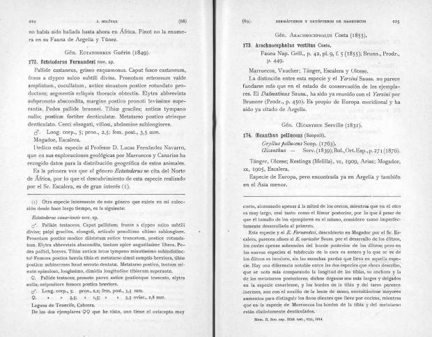 Fig 3 Descripción de Ectatoderus canariensis en 1914 por Ignacio Bolívar [2].