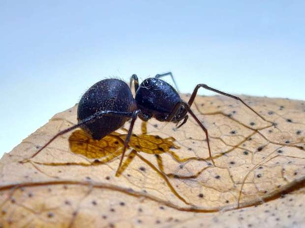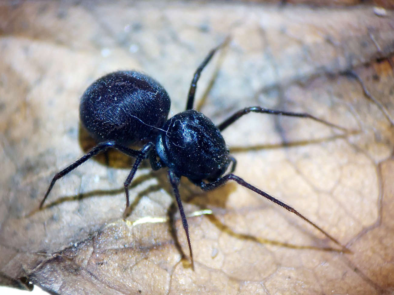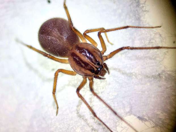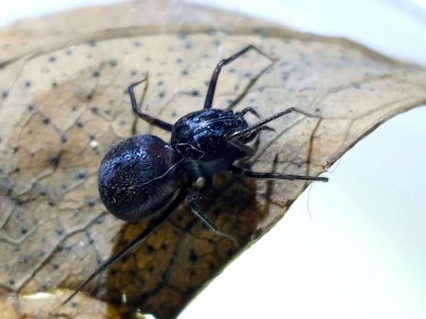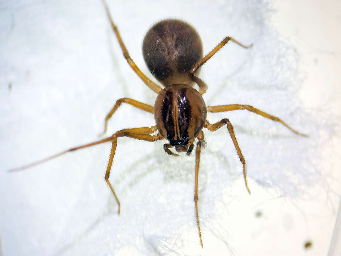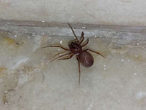 En casa, me entretuve con la lupa binocular para asegurar la especie. Tuve dudas que no fuera la especie exótica Scytodes fusca que circula por Europa central [4]. Según la documentación consultada, el primer ejemplar era un juvenil y, el segundo, una hembra adulta [5, 6]. Puede suceder que en zonas de la península, los machos y hembras de S. velutina sean claros. A esta forma se la denomina Scytodes velutina delicatula, que originalmente fue descrita como S. delicatula y posteriormente fue asimilada a S. velutina. Los adultos miden 3-6 mm de longitud, siendo la hembra de mayor tamaño [6].
