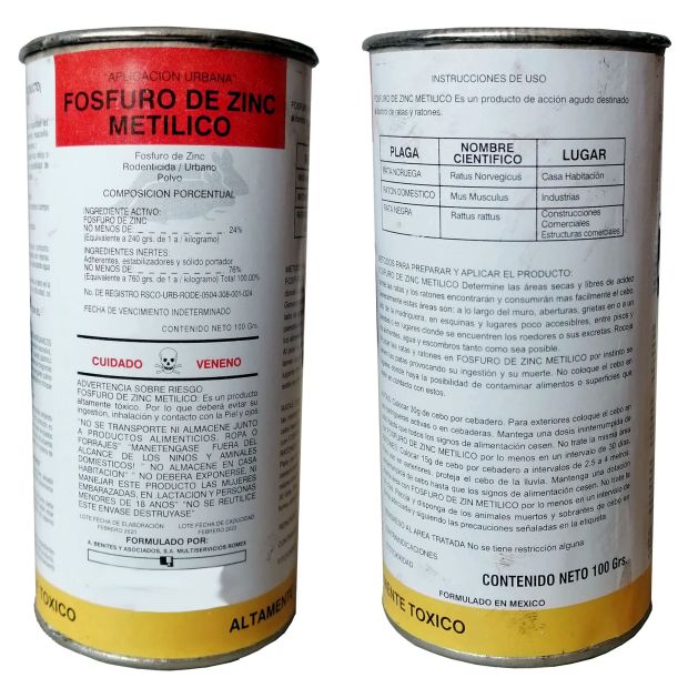 Fig 4. FOSFURO DE ZINC METÍLICO (100 gr) de México./ consumex.com.mx