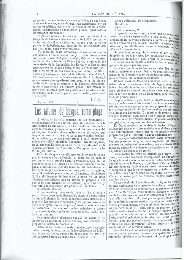 [11] El Barón de Beorlegui. 30-08-1923. Los ratones de bosque como plaga. La voz de Liébana. Páginas 4-5.