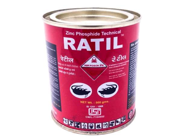 Fig 1. RATIL (500 gr), fosfuro de zinc técnico comercializado en India./ dir.indiamart.com