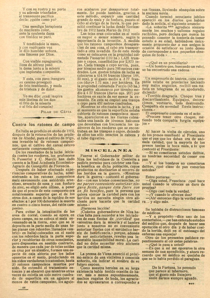 [10] Redacción. 20-02-1915. Contra los ratones de campo. La Hormiga de oro. Página 24.