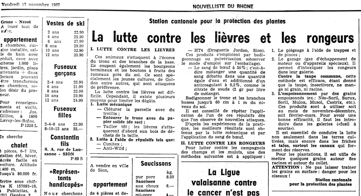 [3] Station cantonale pour la protection des plantes. 17-11-1967. La lutte contre les lièvres et les rongeurs. Pág. 21.