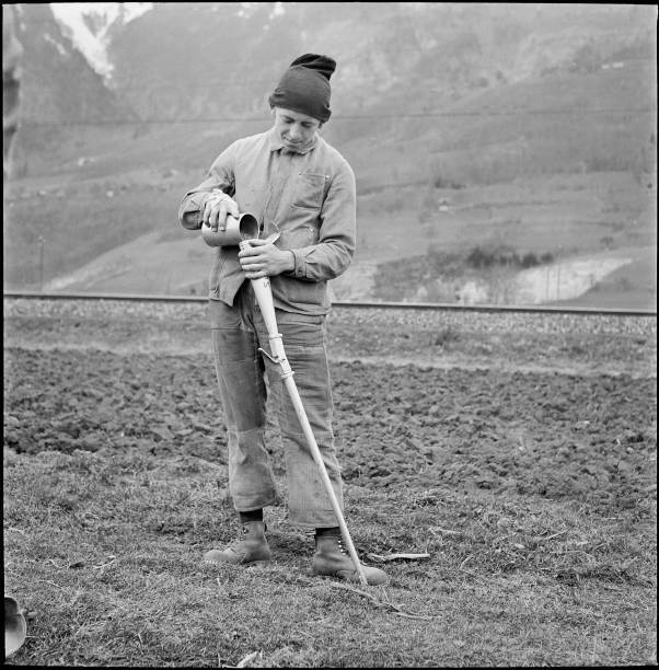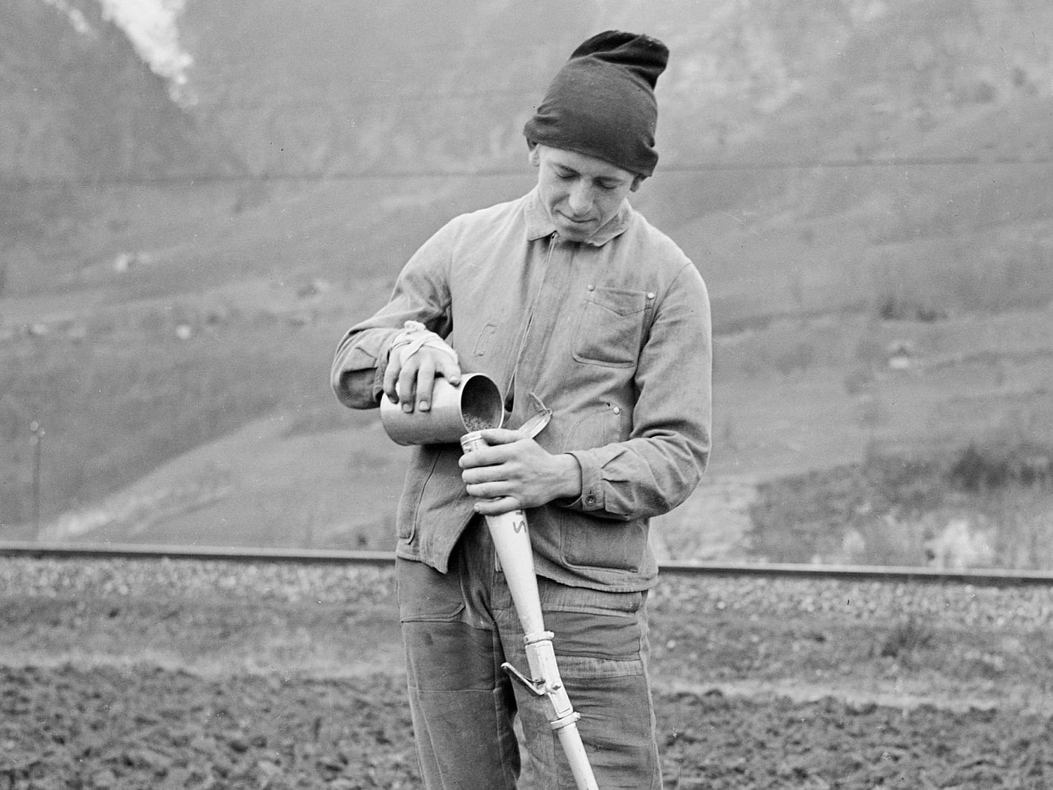 La imágenes muestran una cuadrilla de 10 personas que se dirigen a unos campos de Rüti, Suiza (figuras 4-7). Luego se puede ver cómo aplican el cebo rodenticida con ayuda de un aplicador en forma de escopeta (figuras 8-15). Al ver las imágenes he pensado que se trataba de una aplicación contra micromamíferos silvestres de los géneros Arvicola y Microtus, es decir, rata topera, ratilla de campo y topillo. Desde hace muchas décadas se usan cebos contra estas especies que pueden infestar los campos de cultivo. Hace poco dediqué una entrada al fosfuro de zinc con el cual desde la década de 1910 se llevan formulado cebos contra estas especies silvestres [2]. Tradicionalmente se aplicaban con la ayuda de un aplicador como el de las imágenes en forma de escopeta que era llamado «fusil à souris» (figura 1 y 18) [3]. La culata tiene forma de embudo y hace la función de depósito donde se introduce el cebo. Mediante un gatillo se deja caer en la boca de la madriguera. Esto sería lo correcto para mayor eficacia y evitar que el cebo fuera a parar a otros animales como aves. En las dos últimas imágenes, también se ve una aplicación directamente con la mano (figuras 16-17).