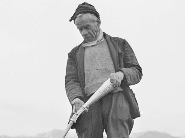 He encontrado una serie de 14 fotografías a la venta en Ebay (ebay.com) sobre la aplicación de rodenticida en campos de cultivo (figuras 4-17). El vendedor utiliza la siguiente descripción para las fotografías: «Plague mice Ruti farmers distribute Surux rodenticide around – 1948» [1]. Esta serie también está a la venta en Getty Images (gettyimages.fi) bajo esta descripción: «Plague of mice in Rüti, farmers distribute Surux rodenticide, around 1948». En esta página se indica que la imágenes fueron tomadas el primero de abril de 1948.
