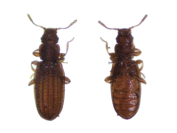 Años atrás descubrí los latrídidos (Latridiidae) gracias a una tremenda infestación provocada en los pisos del sótano de un hospital [1]. Estos coleópteros están presentes en edificios gracias a los hongos de los que se alimentan. Por ejemplo, se encuentran en paredes y techos mohosos de lavabos, sótanos y bodegas. Pero también se encuentran en almacenes sobre alimentos en malas condiciones de conservación [2, 3]. En consecuencia, su presencia indica un exceso de humedad que permite el desarrollo de hongos. En el caso de los alimentos, claramente indica las malas condiciones de conservación. Y su aparición significa descartar los alimentos afectados, puesto que la proliferación de hongos significa presencia de micotoxinas.