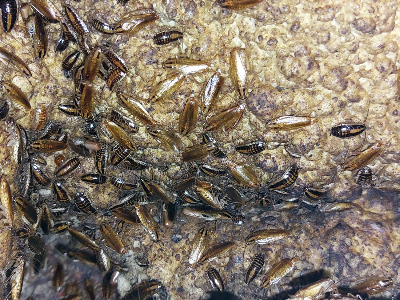En las granjas que visitaba, había cucaracha oriental (Blatta orientalis). Normalmente en un número reducido. Sin embargo, a veces crecía mucho su número en granjas donde la temperatura y humedad eran altas. Aunque no sé exactamente que propiciaba una población elevada. Recuerdo una granja de engorde donde en una nave se había desmadrado. Sin embargo, en el resto de naves el nivel era bajo. Lo que en las granjas hay es comida por todas partes y lugar de refugio. Pues bien, años después me he encontrado con una granja donde se ha llenado de cucaracha alemana (Blattella germanica) en la provincia de Almería. Me informó de ello mi compañero Juan Miguel González. También me ha llegado el caso de una granja llena de cucaracha americana (Periplaneta americana), de lo cual esperaba tener noticia. Pero lo que no esperaba, era ver miles de cucarachas alemanas instaladas en todas las naves de una granja.