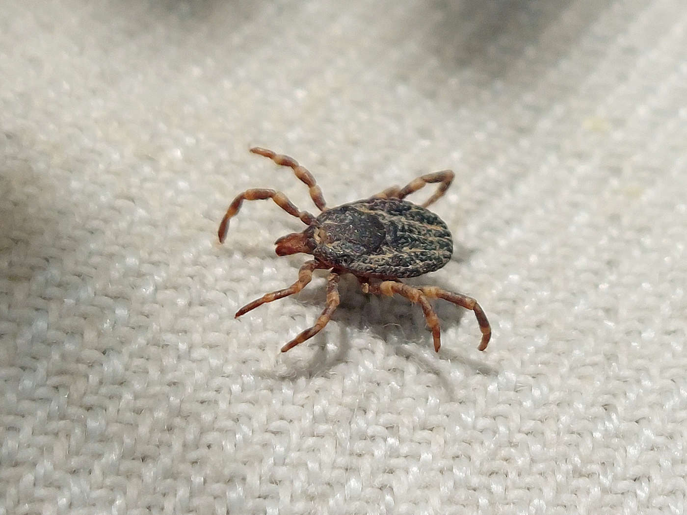 Además de esta especie, encontré muchas Rhipicephalus pusillus [1] (figura 2). Se trata de una pequeña garrapata de 2-3 mm de longitud abundante allí donde haya conejo, de la misma manera que H. lusitanicum. Aunque su principal hospedador es el conejo, puede completar su ciclo sobre otros mamíferos, ya que es una especie de tres hospedadores [2]. Su papel como vector de enfermedades está poco estudiado. Pero está claro que su abundancia, tal y como observé el año pasado en zonas con abundante conejo, puede ser indicio de su relevancia. Como H. lusitanicum, tiene un ciclo anual apareciendo a principios de primavera los adultos que llegaron a su estadio adulto a finales de verano [3]. También he observado que el conejo puede ser parasitado por hasta siete especies de garrapata [4].