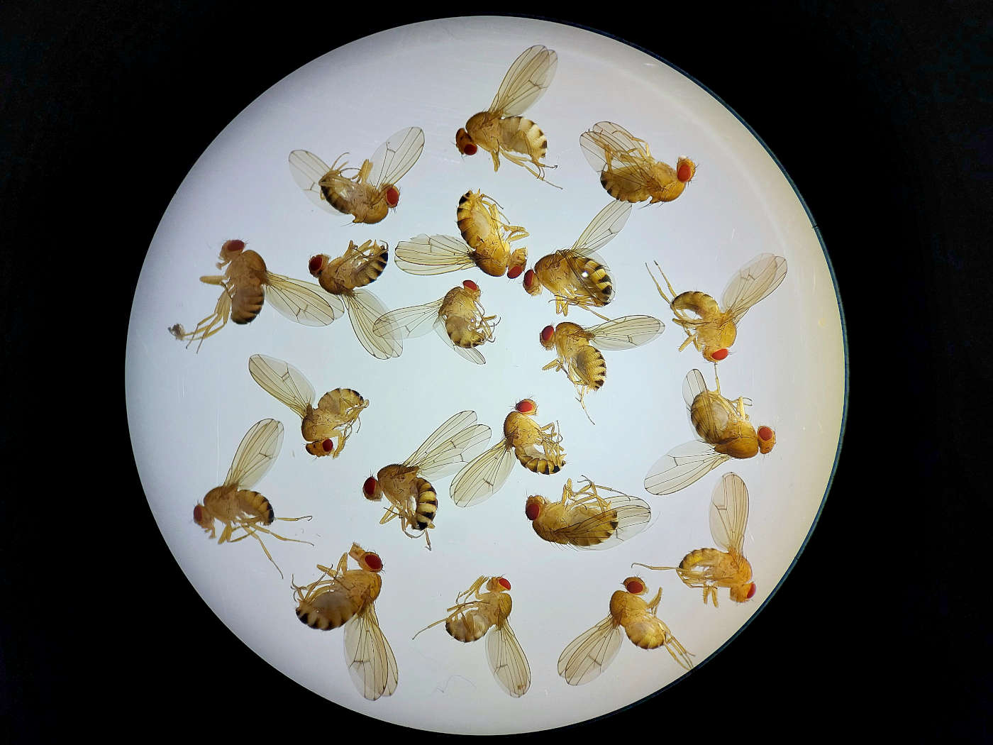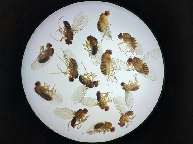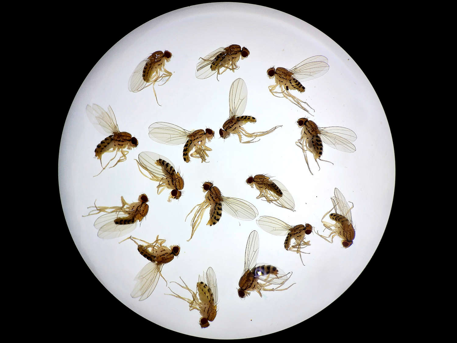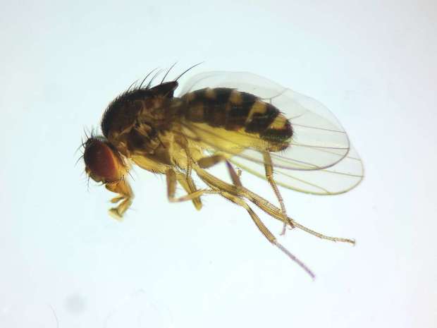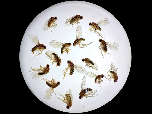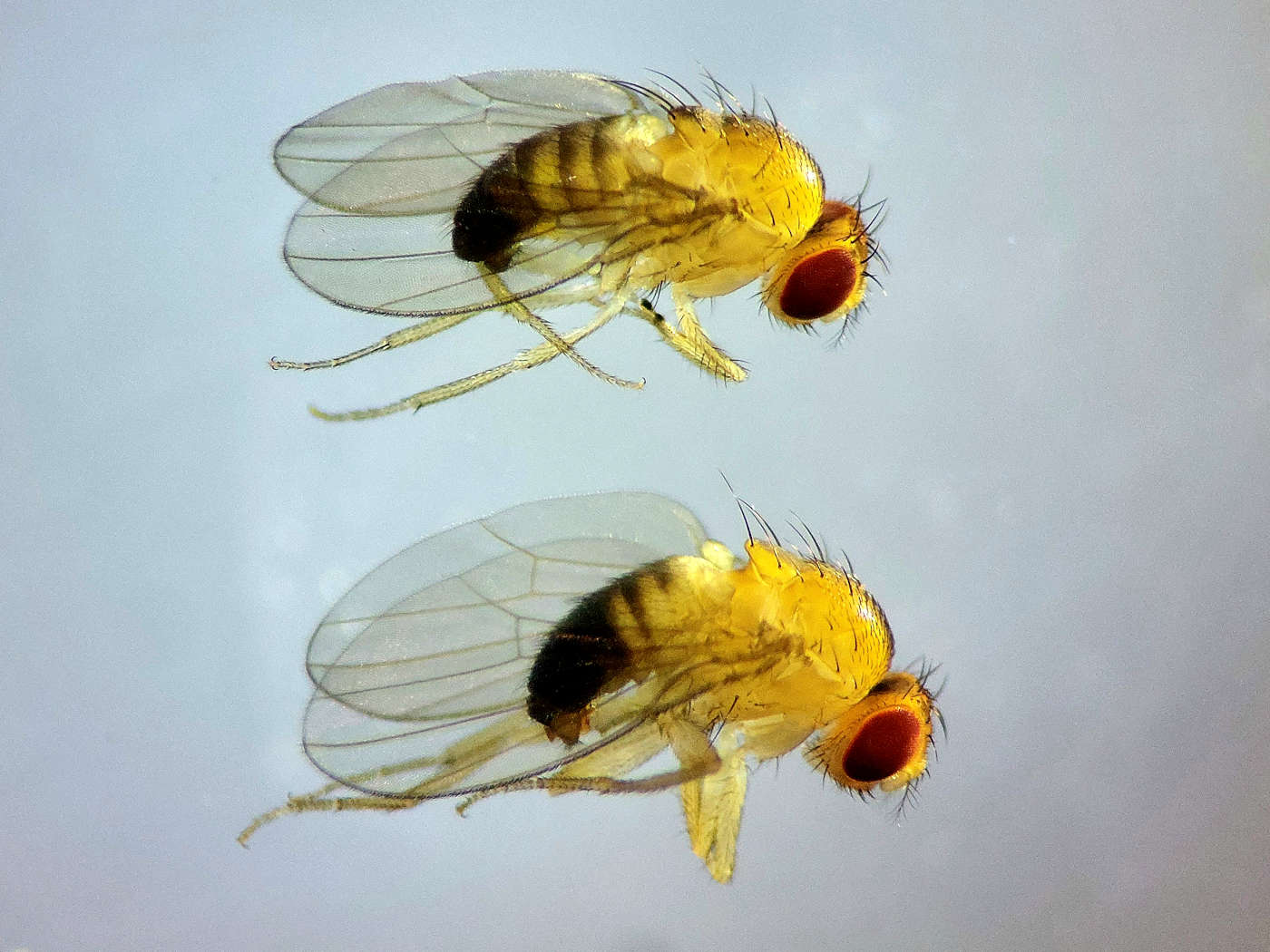 Fig 3. Machos de Drosophila simulans (arriba) y de Drosophila melanogaster (abajo)./ C. Pradera 05-2025
