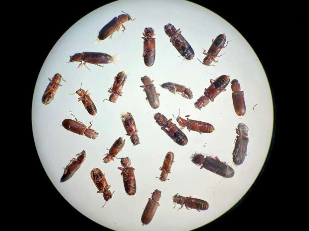 La primera vez que vi este líctido fue gracias a Adrià Miralles que tuvo un caso muy interesante en madera obrada de higuera [5]. Los líctidos no atacan cualquier madera, se especializan por unas especies concretas de frondosa. Atacan la albura de maderas con vasos de gran diámetro (>0,07 mm) y con contenido de almidón superior al 1,5% [6]. Conocida es la polilla del parquet (Lyctus brunneus) que tantos destrozos comete en suelos de roble. En la actualidad, poco tiene que atacar porque el parquet sintético es lo que abunda. Atrás queda la moda de la década de 1980 cuando lo normal eran maderas nobles en suelos.
