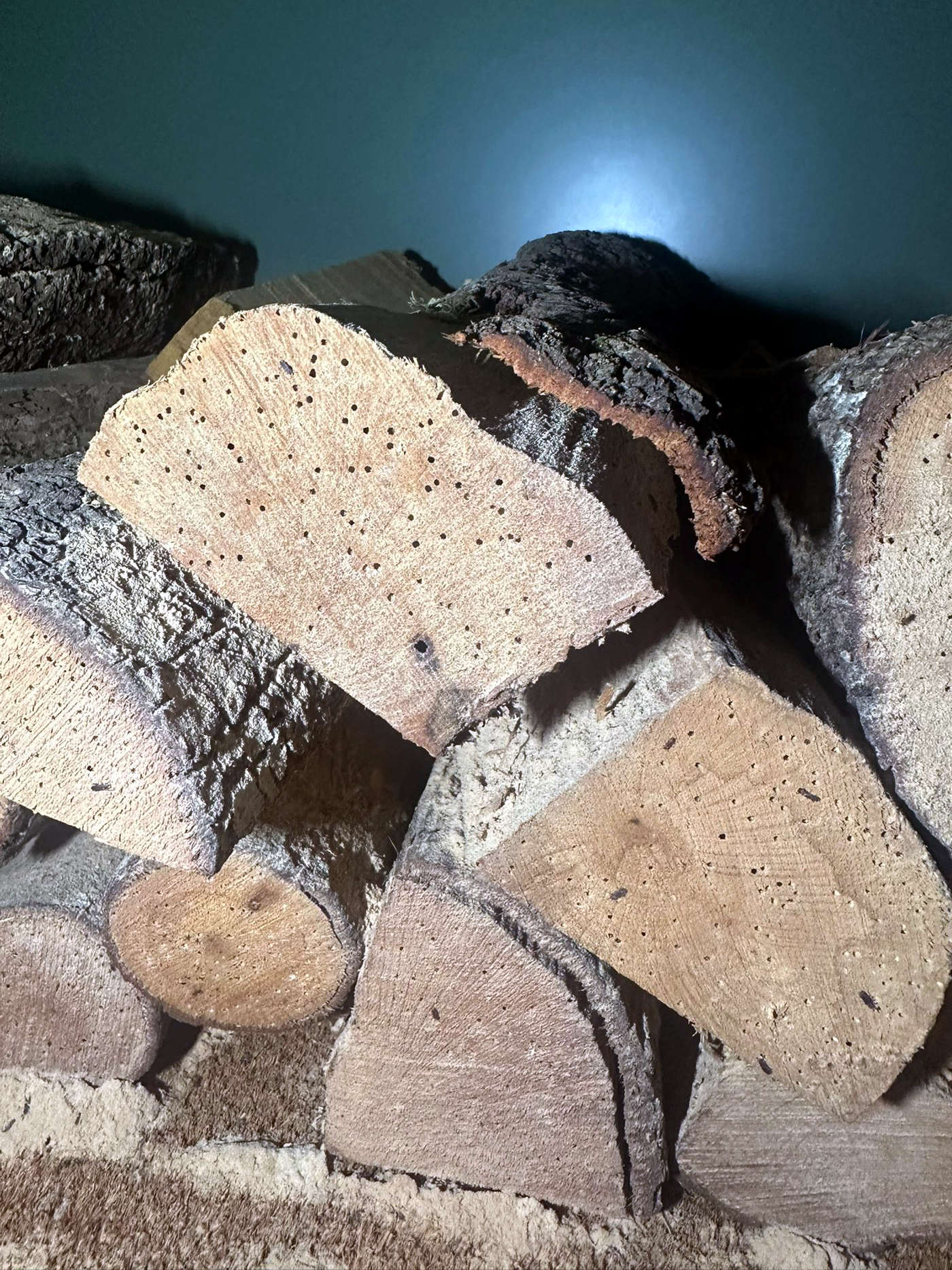 El segundo caso fue gracias a mi compañera Lorena Piñero quien encontró una infestación de pequeñas carcomas en leña decorativa en un cliente situado en la parte sur de Barcelona. Recolectó una muestra y la identificamos como Trogoxylon impressum [4]. En las imagen número 2 se puede ver los ejemplares recolectados por Lorena. Los líctidos se caracterizan por tener un cuerpo estrecho, lo cual facilita su identificación en primavera a través de fotografías. En la imagen número 3, se puede ver una representación de los ejemplares más grandes y más pequeños recolectados. Miden poco más de 1 mm de ancho. En las imágenes 4 y 5 se puede ver los agujeros de salida en los tizones infestados de este caso.