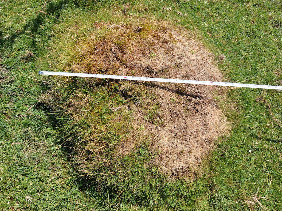 Esta entrada que dedico a Lasius flavus no tiene otro objetivo que mostrar la grandeza de esta especie. En la imagen número 7, se pueden ver algunos montículos más en detalle. No son pequeños. Medí por curiosidad algunos. Uno tenía una altura de 30 centímetros (figuras 9 y 10). Otro, menos alto pero más ancho, tenía un diámetro de unos 70 centímetros en la base (figuras 11).