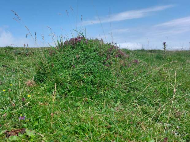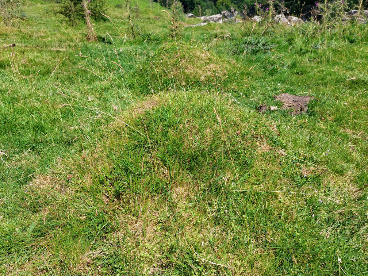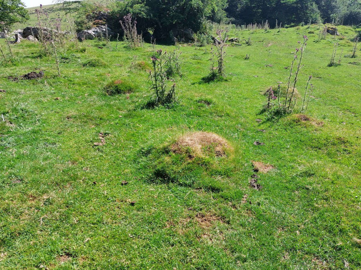 Hace una semanas en Azpegi (Navarra), además de tábanos e hipobóscidos, encontré montículos de Lasius (Cautolasius) flavus (figura 1). A 1.000 metros de altitud y a lo largo de una gran zona, pude ver colonias de esta especie subterránea (hipogea) que se caracteriza por construir pequeños montículos. Las obreras no salen al exterior y tienen un color pálido amarillo [1]. En esta zona es una especie era muy abundante. Construye montículos que favorecen el crecimiento de la hierba (y sus raíces) y captan el calor del sol [2]. Esta capacidad de moldear el entorno es como las especies del género Formica que construyen domos de acículas, ramitas, piedras u otros materiales [3].
