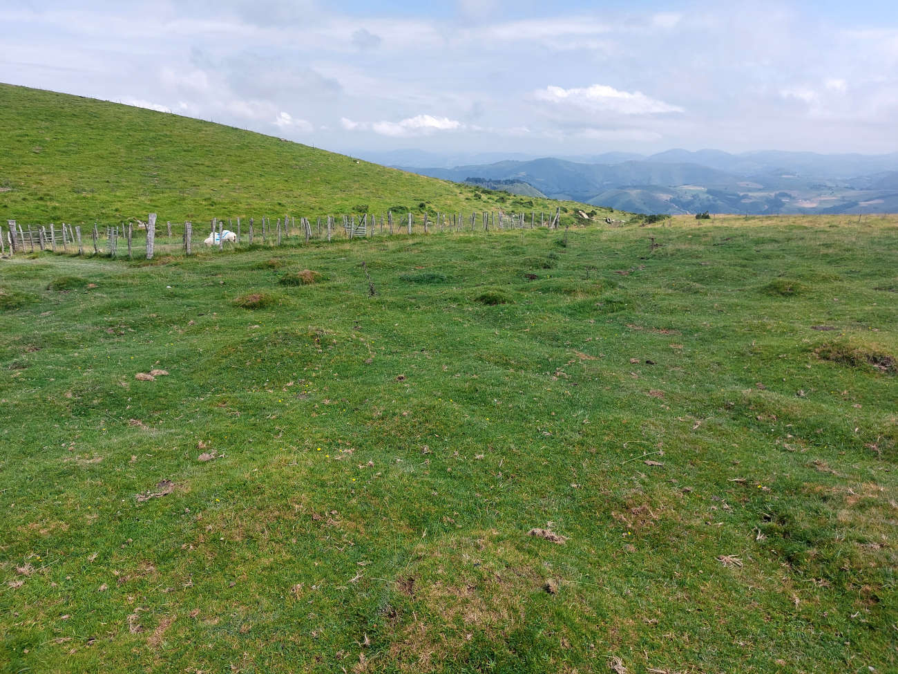 En esa zona cerca entre Navarra y la Aquitania, Lasius flavus está en un lugar idóneo (figura 3). Es por ello que es abundante y fácil de ver la multitud de montículos que pueblan los prados (figuras 4-6). Es un área abierta formada por pastos donde el clima húmedo propicia que haya siempre hierba verde. Las especies del subgénero Cautolasius son hipogeas y se alimentan principalmente de las secreciones de pulgones radiculares que se alimentan en las raíces. Las hormigas Cautolasius cuidan y protegen a los áfidos que mueven entre las raíces de las hierbas que crecen en el montículo y cerca de este. Cuando llega el invierno, guardan los huevos de áfidos en las mismas cámaras donde están sus propios huevos [4].