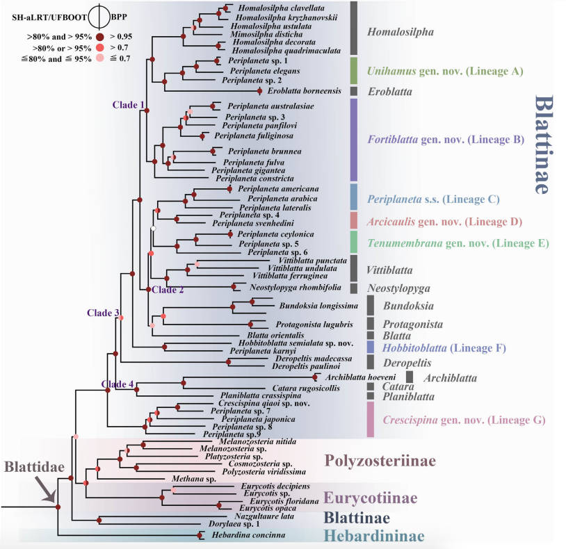 China es una potencia mundial. Es obvio. Y esto se ve en muchos campos. En los últimos años están llegando una legión de artículos del campo de la Biología muy interesantes. Pero no solo los chinos aportan desde su país natal, sino también desde Estados Unidos donde hay muchos investigadores migrados o de segunda generación. En el campo de la taxonomía sobre cucarachas, hemos de agradecer el esfuerzo por clarificar las relaciones entre las especies con implicaciones en control de plagas de la familia Blattidae y Blattellidae. Las aportaciones son de un grupo de investigadores de la Southwest University de Chongqing.