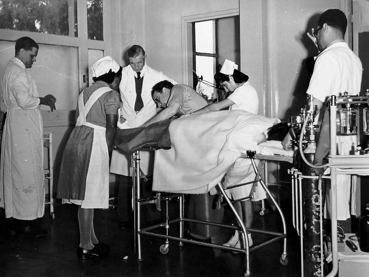 Fotografía núm. D.C.13 (figura 1). «For many centuries the people of Cyprus had been scourged year after year with malaria. In 1946, with money from the Colonial Welfare and Development Fund, the Government started a three-year campaign the dread disease. The plan was more like a liberation campaign grounds of the mosquito, and when a stretch was cleared, disinsectization stations were posted at strategic points to clean up anyone entering the zone from other parts. The people of Cyprus co-operated wholeheartedly. Result: the complete eradication of the malaria-carrier from the Island. Apart from this, Cyprus is also very well served by medical science. There is one doctor to every 1,300 people. There are 250 doctors in private practice and about 50 private nursing homes. Government hospitals exist in each of the principal towns and a specialist centre at Nicosia. Cost of medical attention and hospital services vary with the financial circumstances of the patient. Poor people are entitled to free or cheap treatment in Government hospitals and dispensaries.»