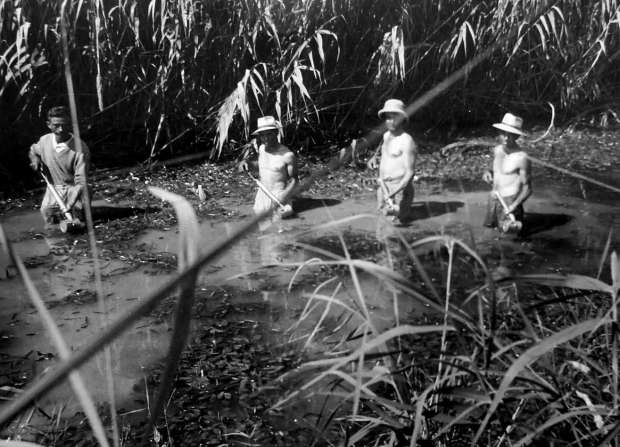 Fig 3. «Each week, during the anti-malaria campaign, every pool of stagnant water was sprayed with D.D.T. solution». Fotografía núm. D38984.