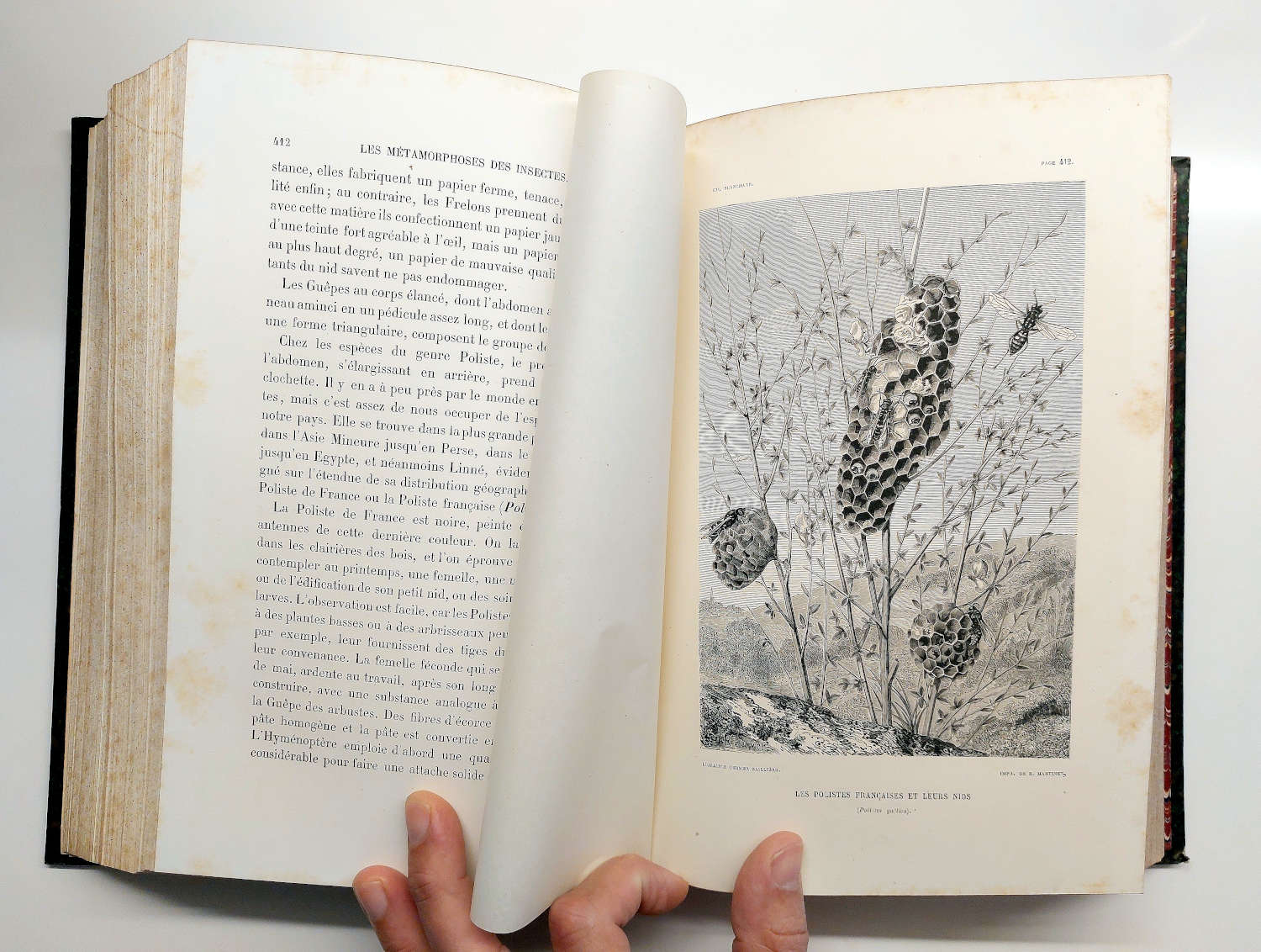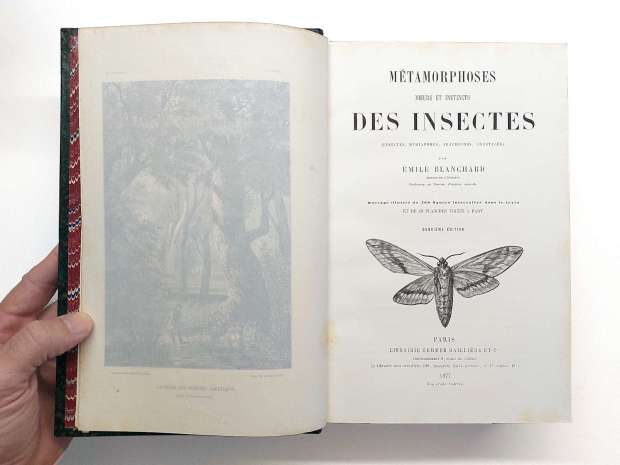 Agradezco a mi amigo Igor Calsina que se acordara de mí. Vio una interesante obra en Francia y me lo trajo. Como a él, nos gustan las cosas antiguas. Se trata de un ejemplar de ‘Métamorphoses, moeurs et instincts des insectes’ del zoólogo francés Charles Émile Blanchard (1819-1900). Este ejemplar fue publicado en 1877 en París (figura 1). Y según consta en la primera página, es una segunda edición (deuxiéme édition), siendo la primera publicada en 1868. Sin embargo, he estado comparando el ejemplar de 1877 y con uno de 1968 disponible en Biodiversity Heritage Library (biodiversitylibrary.org). Y puedo afirmar que tienen el mismo contenido, ilustraciones y paginación. Por tanto, más que una segunda edición, se trataría de una primera reimpresión.