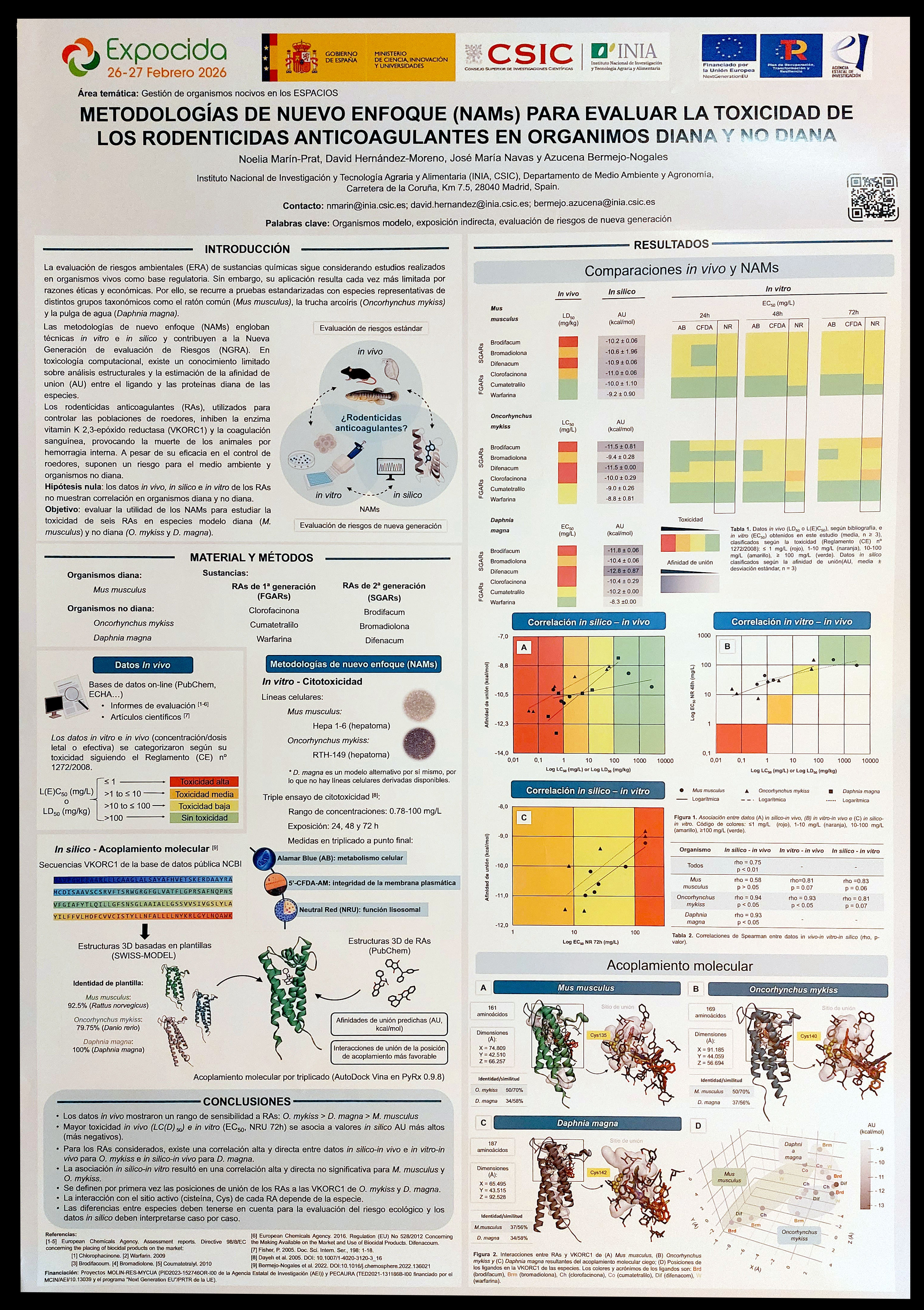 Figura 2. PÓSTER 1 – ‘Metodología de nuevo enfoque (NAMs) para evaluar la toxicidad de los rodenticidas anticoagulantes en organismos diana y no diana’, por Noelia MARÍN-PRAT, David HERNÁNDEZ-MORENO, José María NAVAS & Azucena BERMEJO-NOGALES.