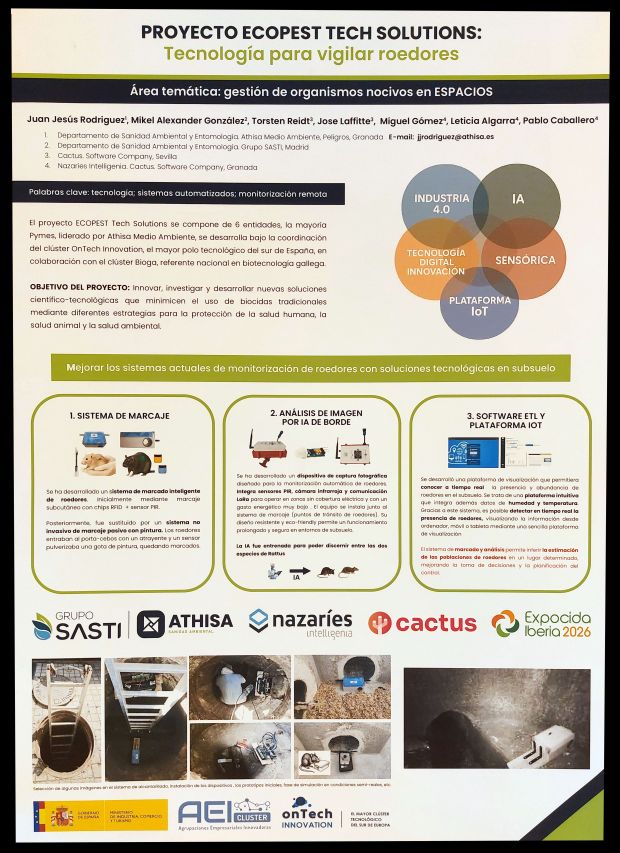 Figura 11. PÓSTER 10 – ‘Proyecto Ecopest Tech Solutions: Tecnología para vigilar roedores’, por Juan Jesús RODRÍGUEZ, Mikel Alexander GONZÁLEZ, Torsten REIDT, Jose LAFFITTE, Miguel GOMEZ, Leticia ALGARRA & Paco CABALLERO.