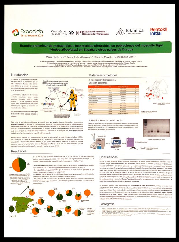 Figura 12. PÓSTER 11 – ‘Estudio preliminar de resistencia a insecticidas piretroides en poblaciones del mosquito tigre (Aedes albopictus) en España y otros países de Europa’, María CHOLVI SIMÓ, María TRELIS VILLANUEVA, Riccardo MORETTI & Rubén BUENO MARÍ.