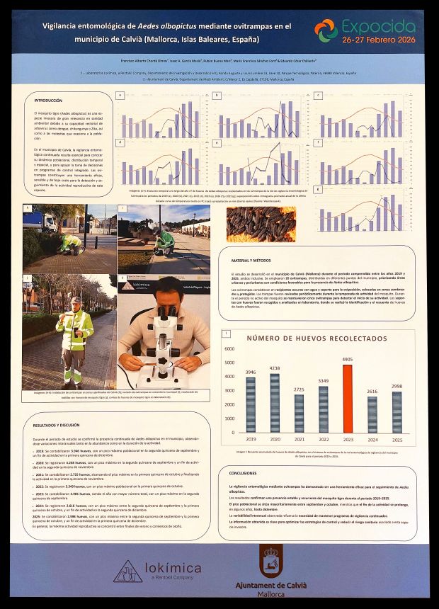 Figura 16. PÓSTER 14 – ‘Vigilancia entomológica de Aedes albopictus mediante ovitrampas en el municipio de Calvià (Mallorca, Illes Balears, España)’, por Francisco CHORDÁ OLMOS, Isaak A. GARCÍA MASIÁ, Rubén BUENO MARÍ, María Francisca SÁNCHEZ FONT & Eduardo CÓZAR CHILLERÓN.