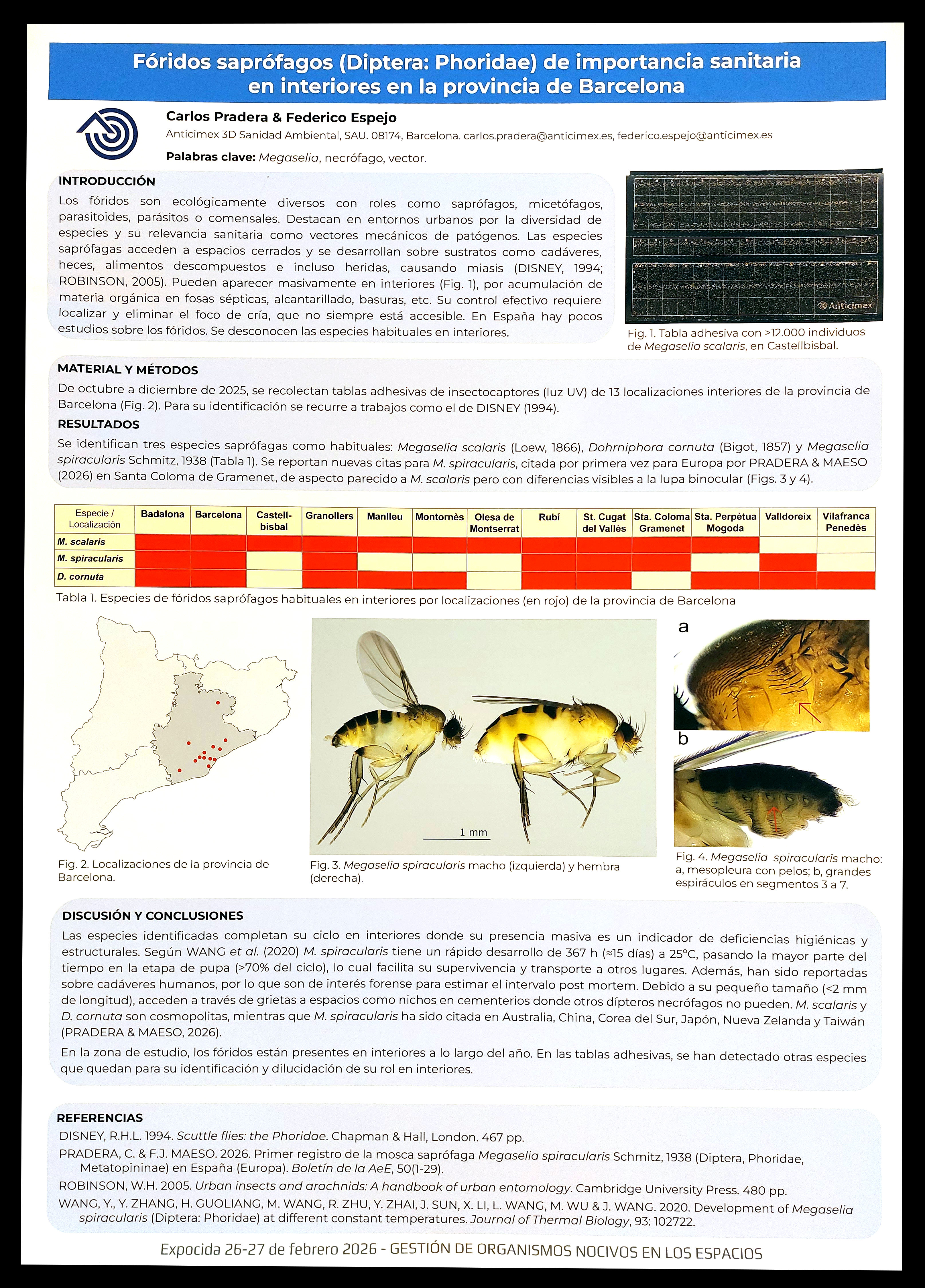 Figura 17. PÓSTER 16 – ‘Fóridos saprófagos (Diptera: Phoridae) de importancia sanitaria en interiores en la provincia de Barcelona’, por Carlos PRADERA & Federico ESPEJO.