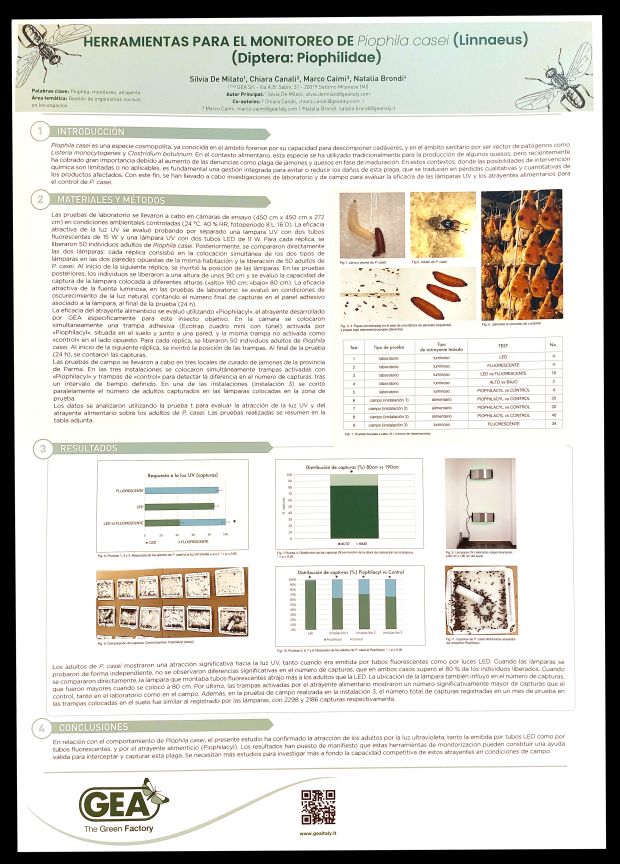 Figura 19. PÓSTER 18 – ‘Herramientas para el monitoreo de Piophila casei (Linnaeus) (Diptera: Piophilidae)’, Silvia DE MILATO, Chiara CANALI, Marco CAIMI & Natalia BRONDI.