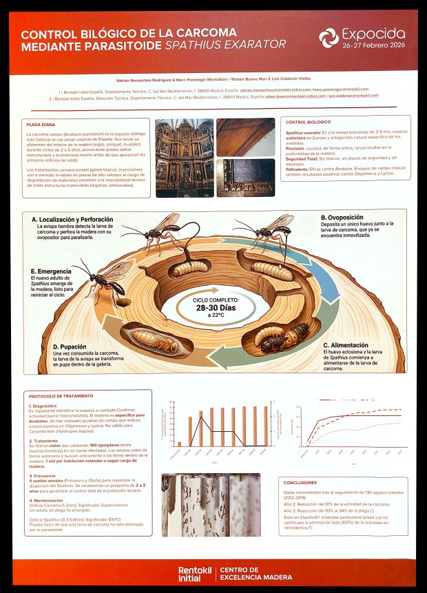 Figura 21. PÓSTER 20 – ‘Control biológico de la carcoma mediante parasitoide Spathius exarator‘, por Adrián NECOECHEA RODRÍGUEZ, Marc PREMINGER MONTALBÁN, Rubén BUENO MARÍ & Luis CALDERÓN VIELBA.