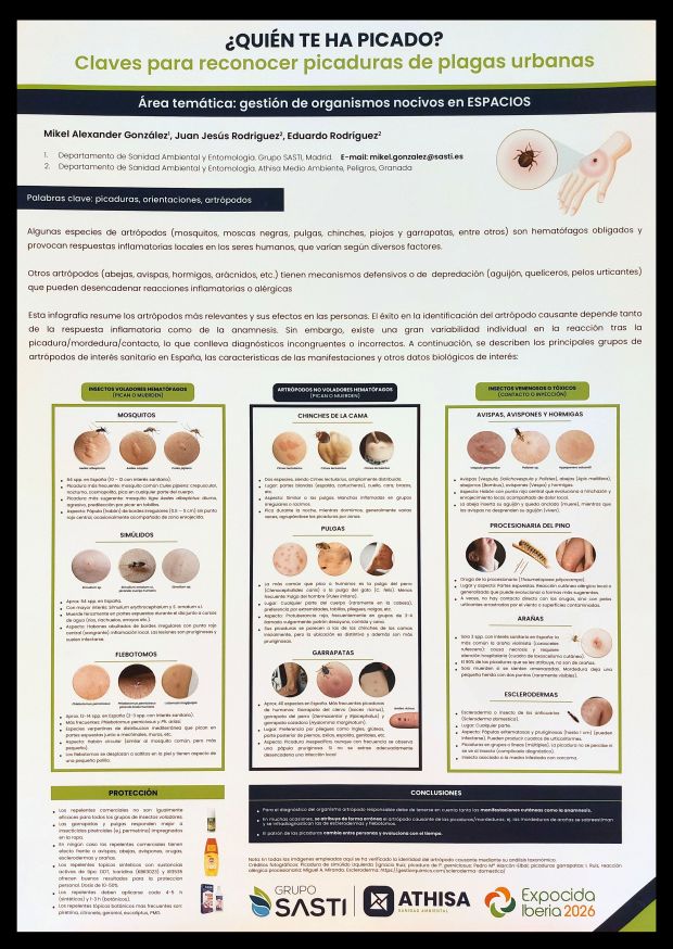 Figura 24. PÓSTER 23 – ‘¿Quién te ha picado? Claves para reconocer picaduras de plagas urbanas’, por Mikel Alexander GONZÁLEZ, Juan Jesús RODRÍGUEZ & Eudardo RODRÍGUEZ.