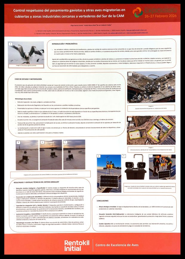 Figura 25. PÓSTER 24 – ‘Control respetuoso del posamiento gaviotas y otras aves migratorias en cubiertas y zonas industriales cercanas a vertederos del Sur de la CAM’, por Íñigo GARCÍA URIARTE, Rubén BUENO MARÍ & Luis CALDERÓN VIELBA.