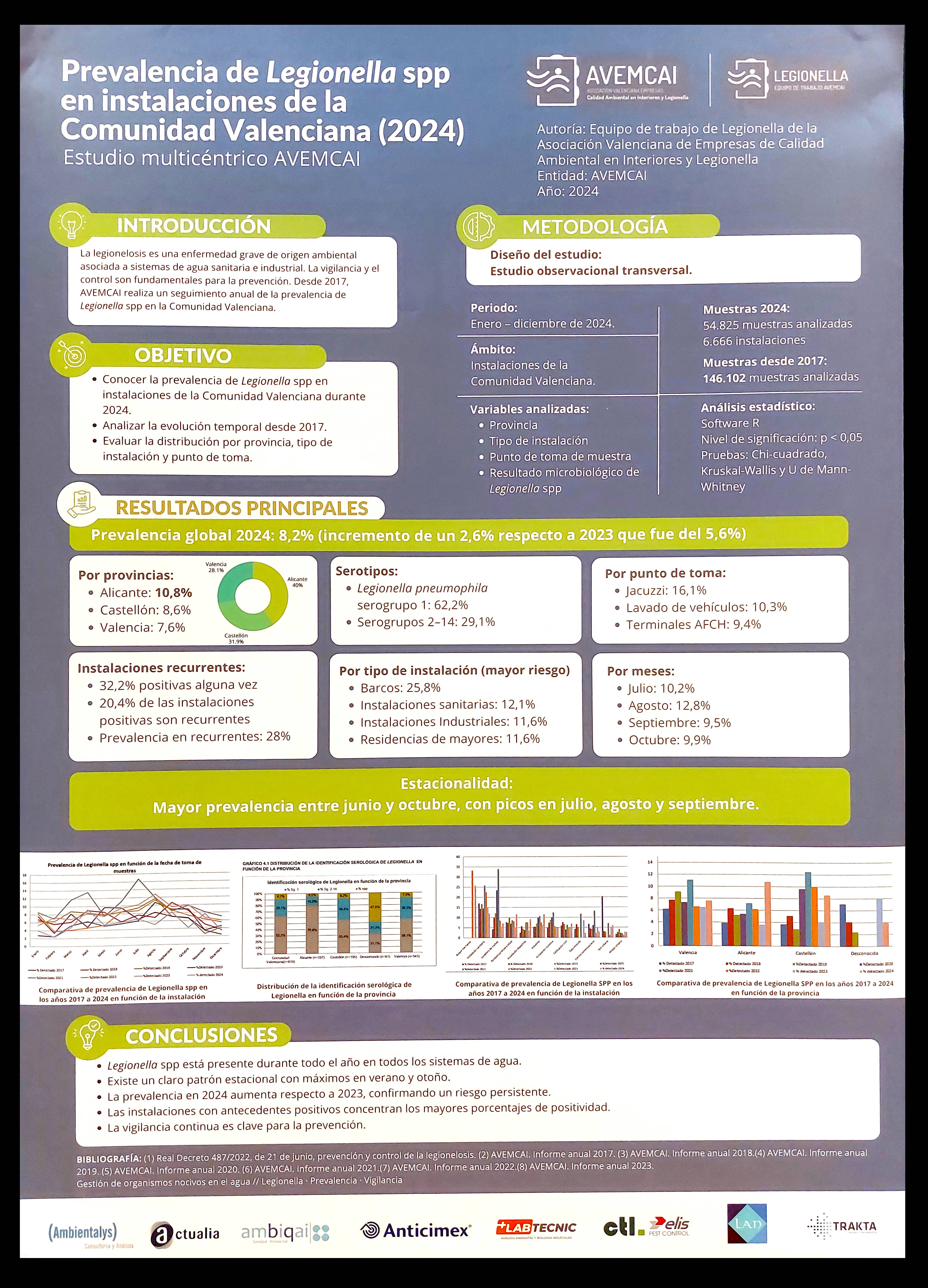 Figura 27. PÓSTER 26 – ‘Prevalencia de Legionell spp en instalaciones de la Comunidad Valenciana (2024)’, por Equipo de trabajo de Legionella de la Asociación Valenciana de Empresas de Calidad Ambiental en Interiores y Legionella (AVEMCAI).