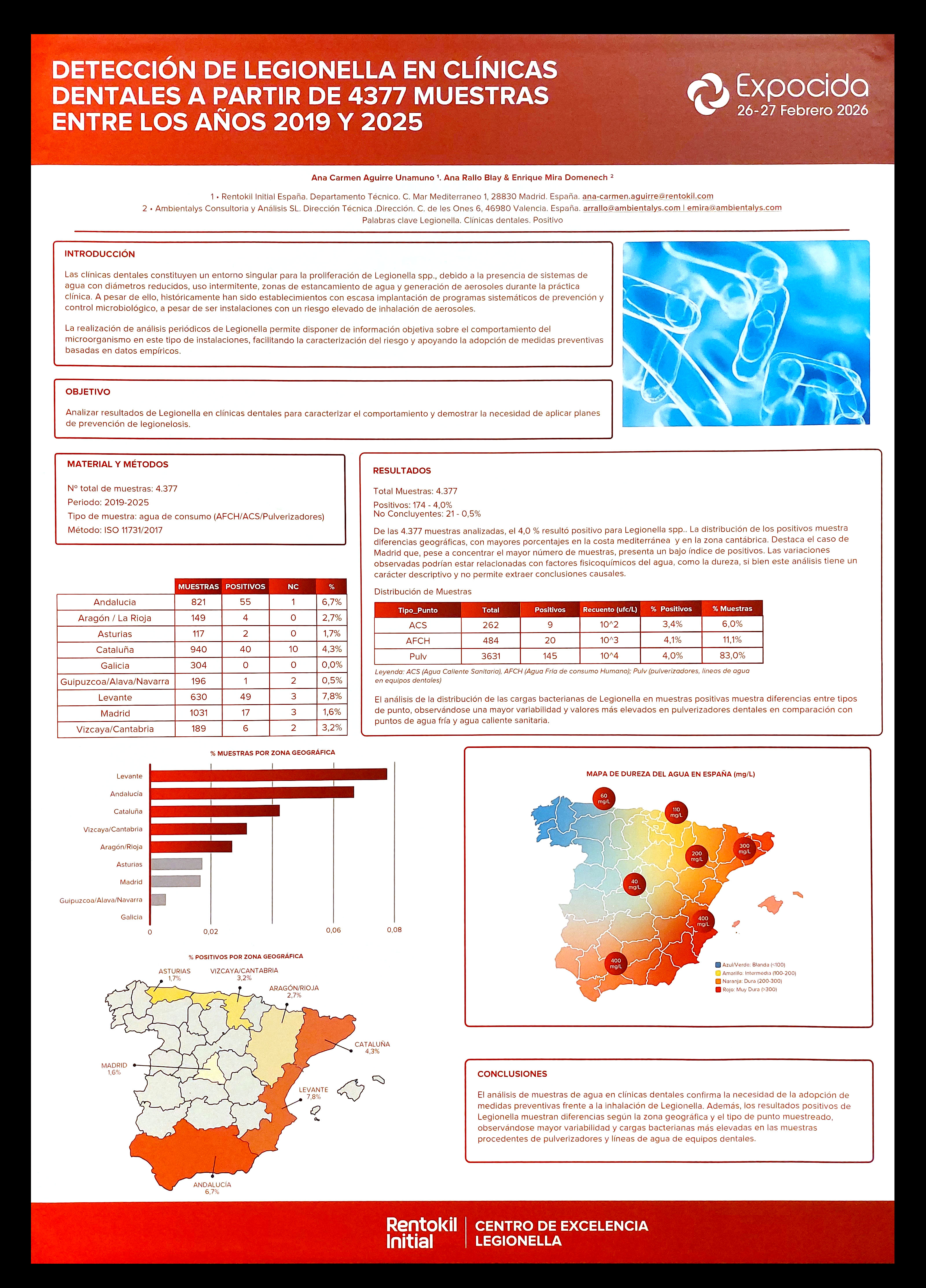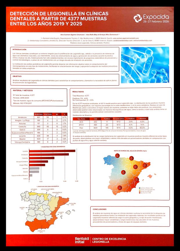 Figura 28. PÓSTER 27 – ‘Detección de Legionella en clínicas dentales a partir de 4377 muestras entre los años 2019 y 2025’, por Ana Carmen AGUIRRE UNAMUNO, Ana RALLO BLAY & Enrique MIRA DOMENECH.
