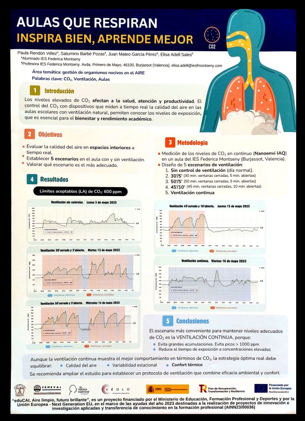 Figura 29. PÓSTER 28 – ‘Aulas que respiran: inspira bien, aprende mejor’, por Paula RENDÓN VÉLEZ, Saturnino BARBÉ POZAS, Juan Mateo GARCÍA PÉREZ & Elisa ADELL SALES.