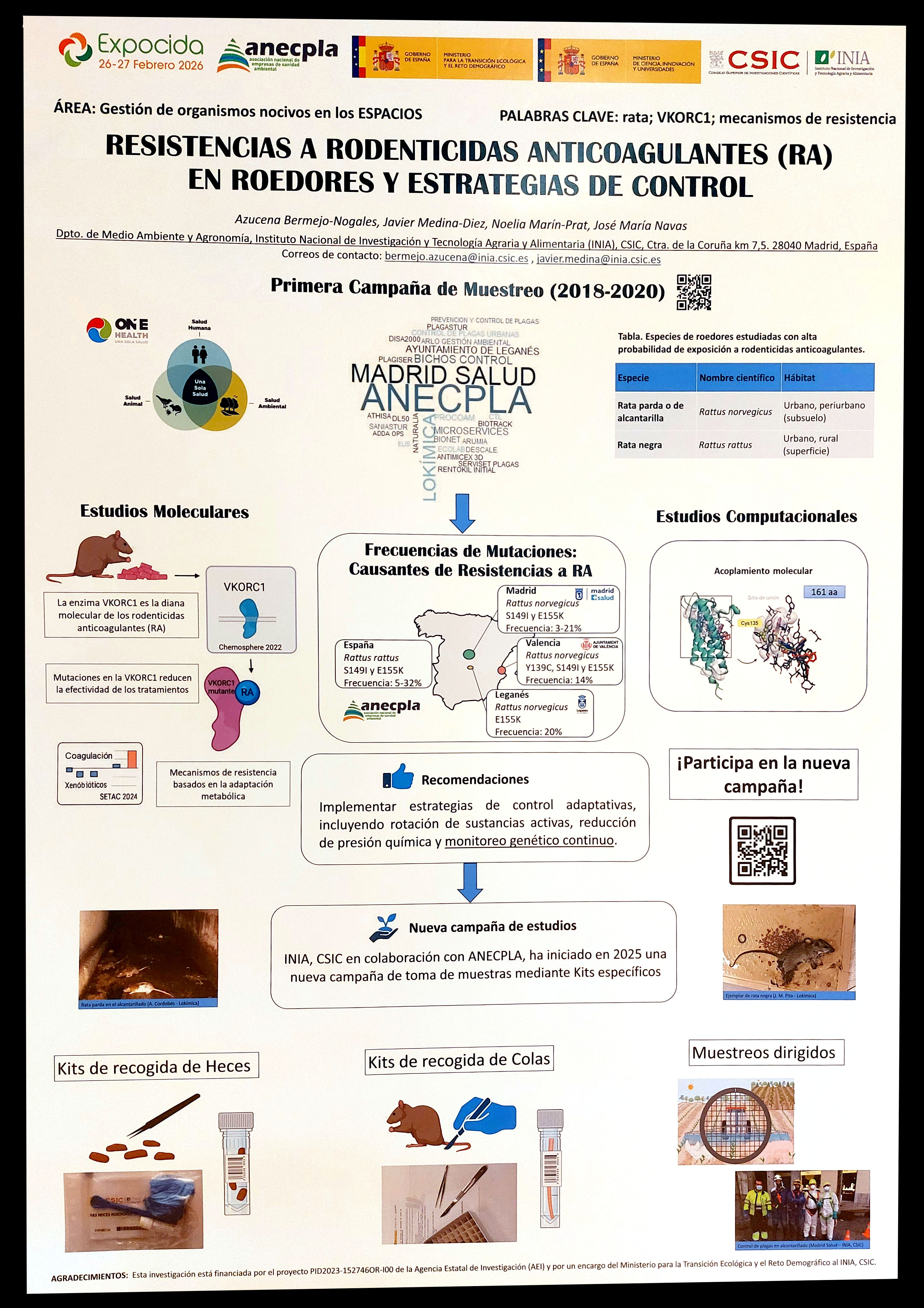 Figura 4. PÓSTER 3 – ‘Resistencias a rodenticidas anticoagulantes (RA) en roedores y estrategias de control’, por Azucena BERMEJO-NOGALES, Javier MEDINA-DIEZ, Noelia MARÍN-PRAT & José María NAVAS.