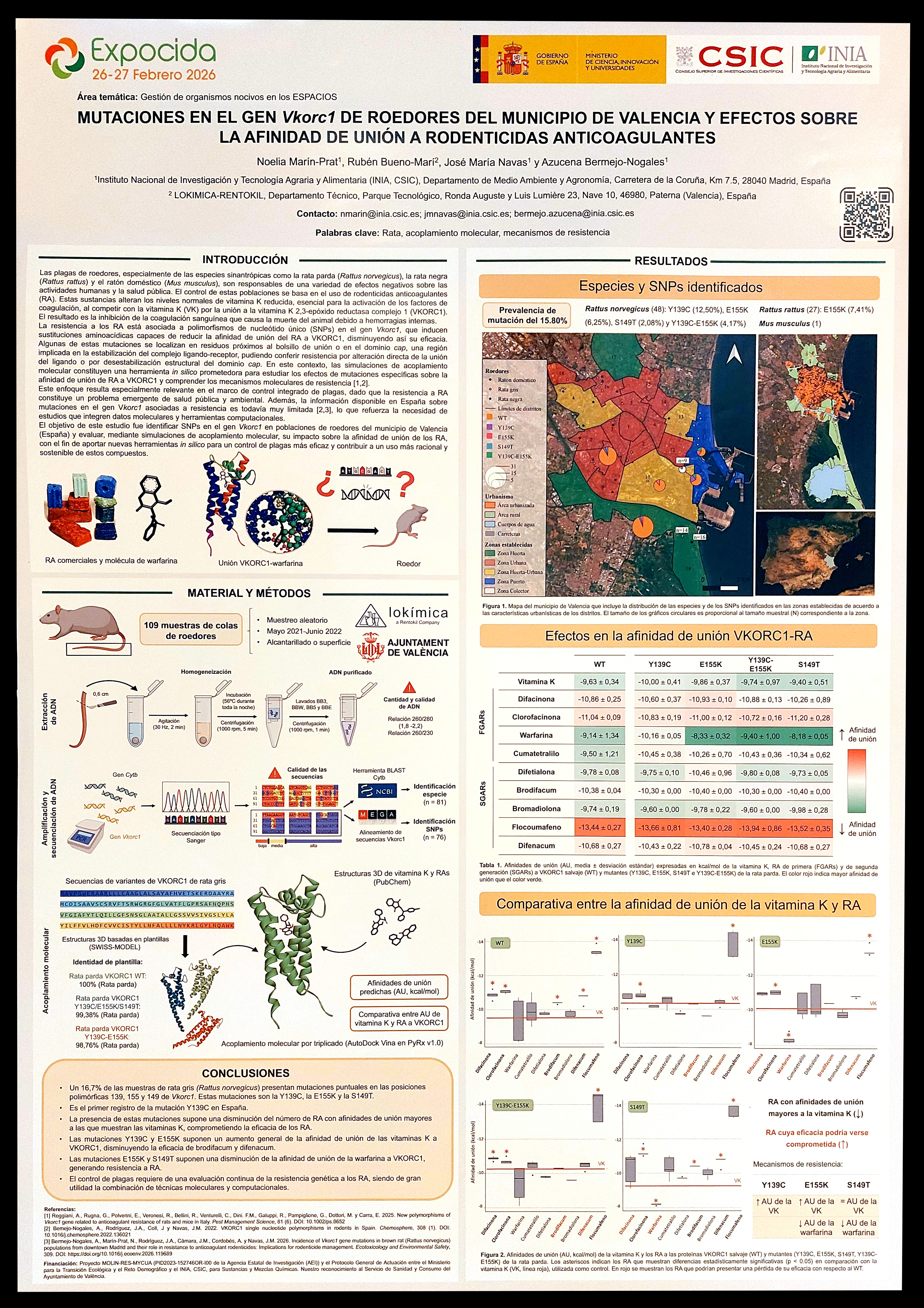 Figura 8. PÓSTER 7 – ‘Mutaciones en el gen Vkorc1 de roedores del municipio de Valencia y efectos sobre la afinidad de unión a rodenticidas anticoagulantes’, por Noelia PRAT-MARÍN, Rubén BUENO-MARÍ, José María NAVAS & Azucena Bermejo-NOGALES.